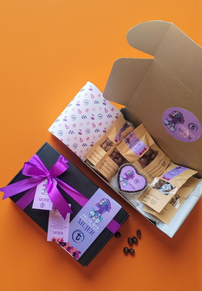 Frutos secos premium, chocolates de verdad y cajas personalizadas que se adaptan a lo que necesitas: cumpleaños, aniversarios, San Valentín, Día de la Mujer, eventos corporativos, kits de bienvenida para colaboradores y mucho más.