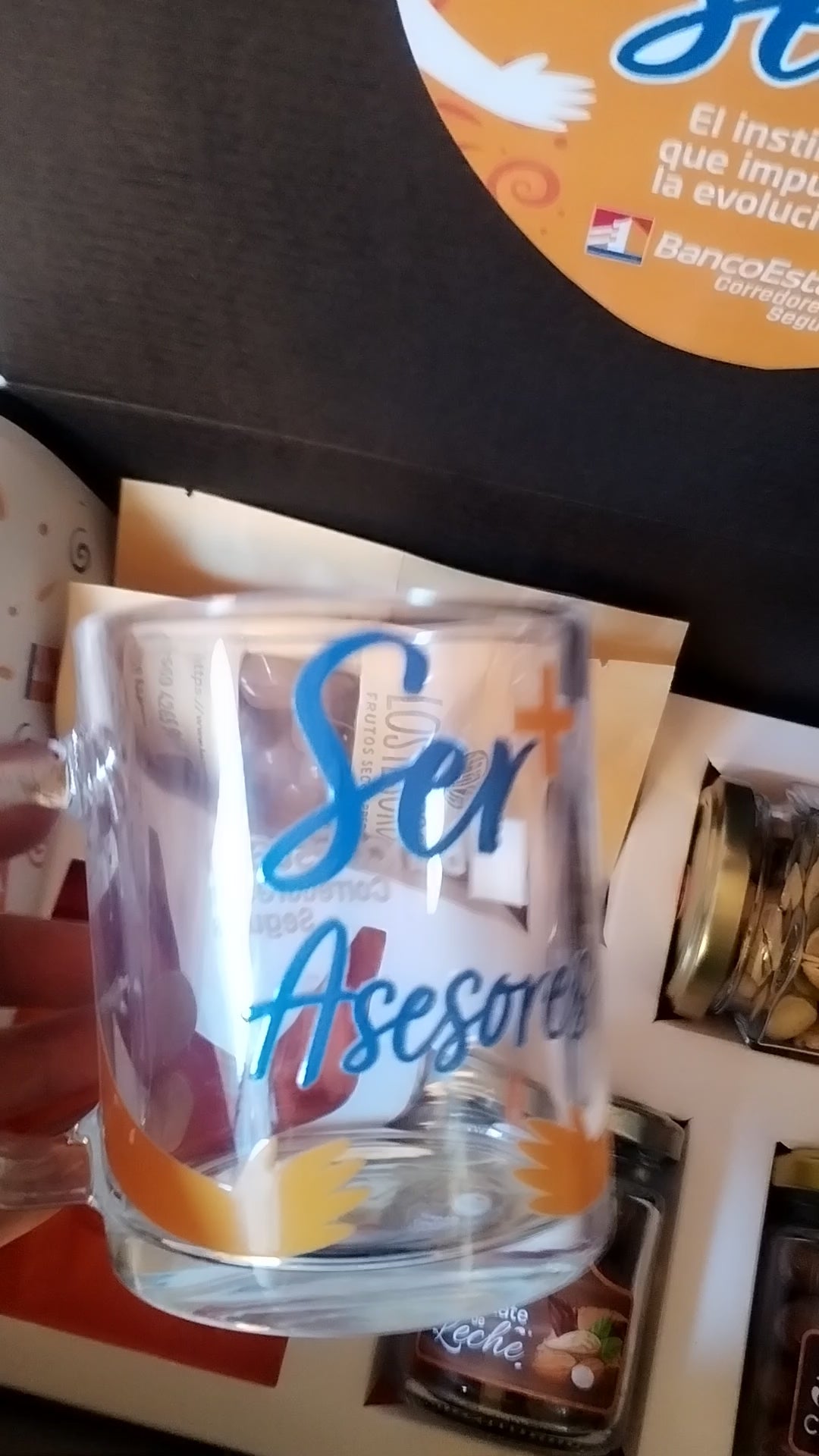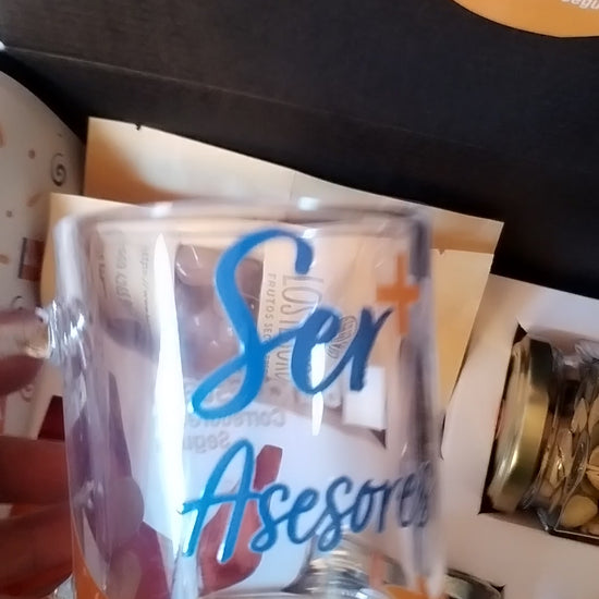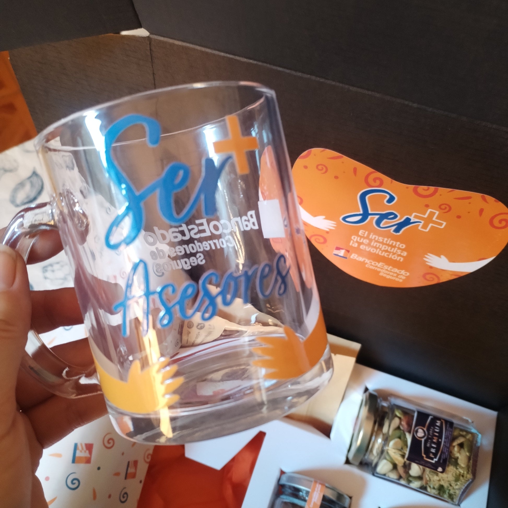 ☕ Taza de vidrio templado personalizada con frase y logo de la empresa