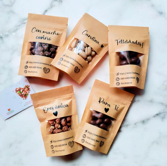 El mensaje personalizado, puedes indicarlo en los comentarios al hacer el pedido, o bien, envíanos un correo a contacto@lostesoros.cl o a nuestro wsp +569 42659644. Recuerda indicar de quién es y para quién es tu regalo.
