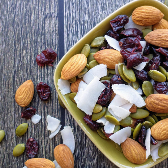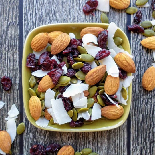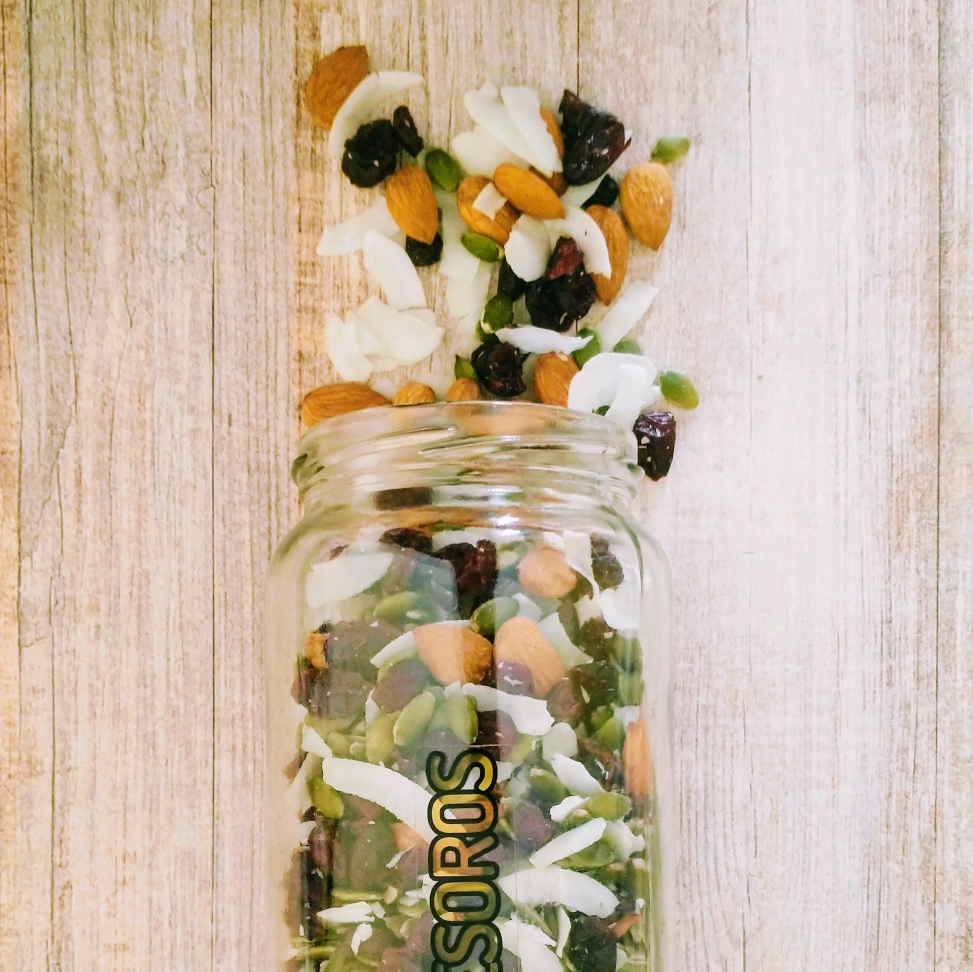 Delicioso Mix de cranberries, almendras enteras seleccionadas, coco laminado y semillas de calabaza. Ideal como snack y para llevar a todos lados.