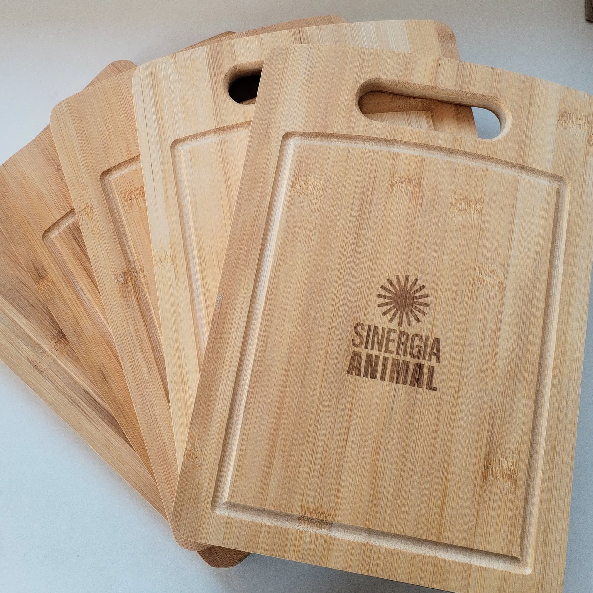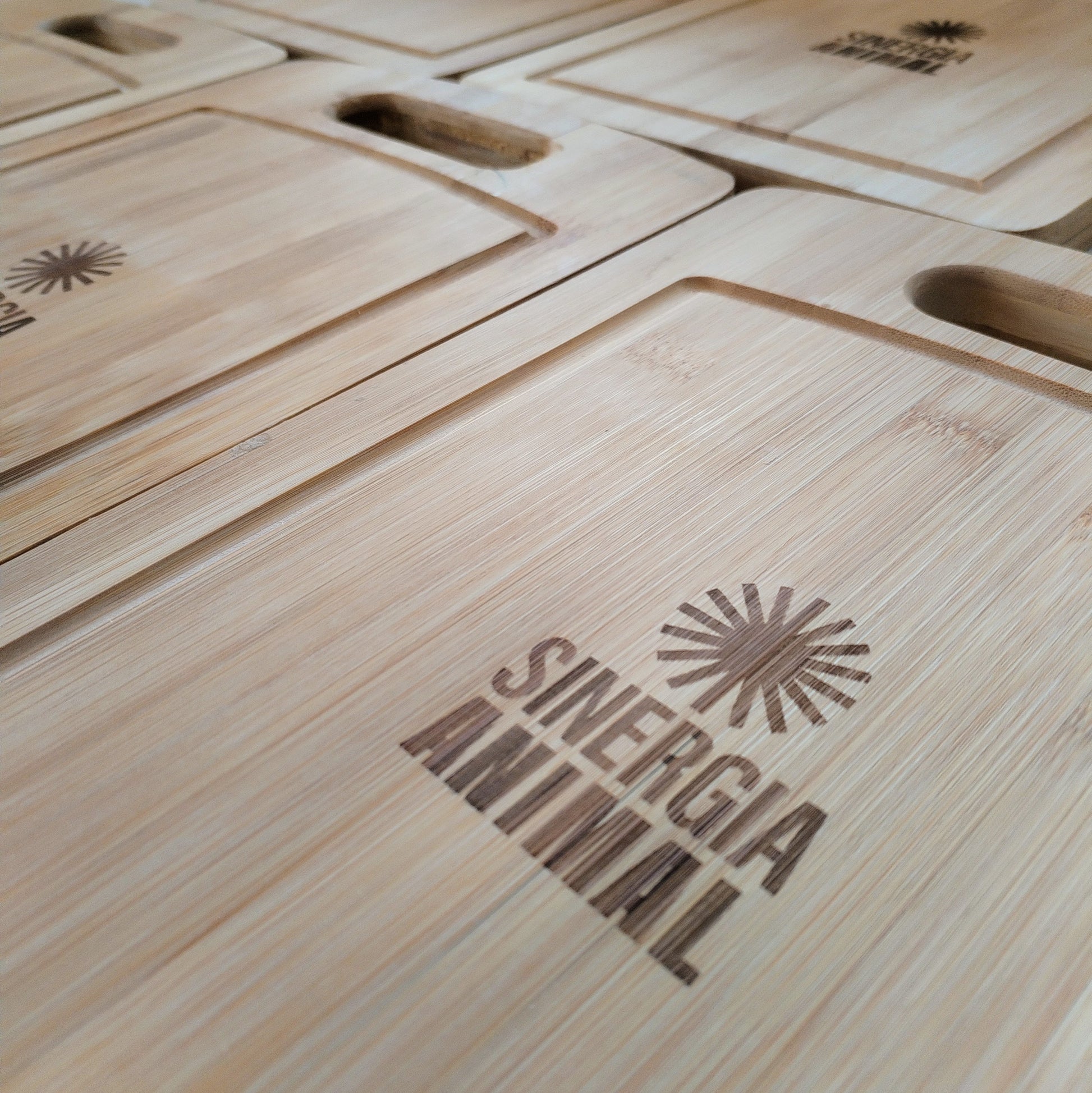 Tabla de cortar de madera (31 x 21 cm aprox.), grabada con el logo de tu empresa, ideal para dar un toque distintivo y duradero.