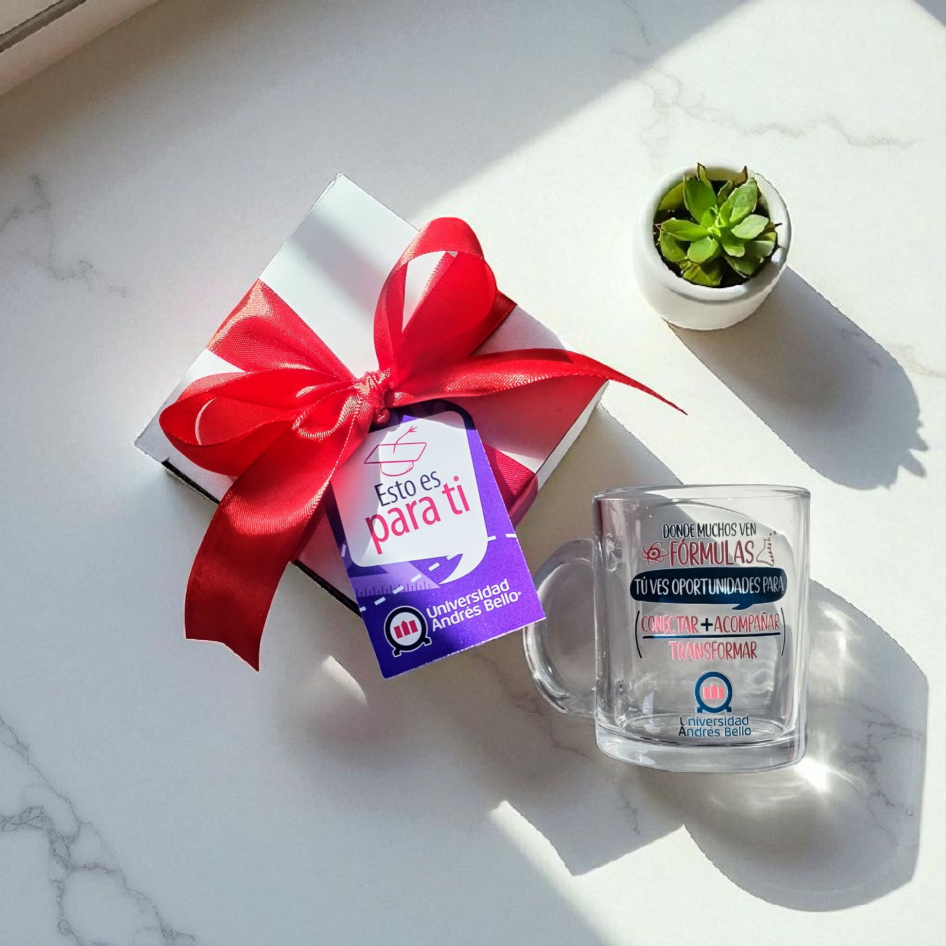 Este tazón de vidrio transparente, con frase en relieve, es perfecto para complementar regalos personalizados, desayunos corporativos o como objeto independiente para celebraciones especiales.